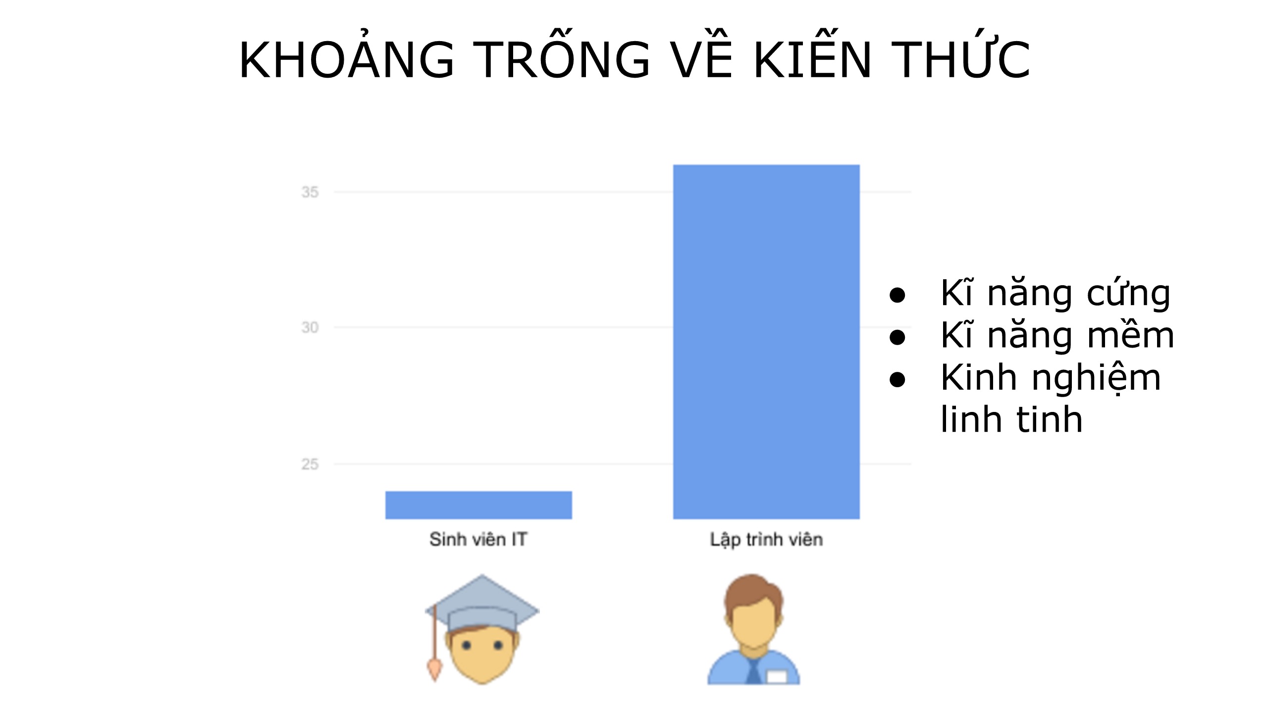 Nguyên nhân cơ bản nhất là kiến thức được dạy trong trường không bao giờ đủ. Có một khoảng trống lớn về kiến thức giữa sinh viên IT mới ra trường và một lập trình viên “thực thụ”.