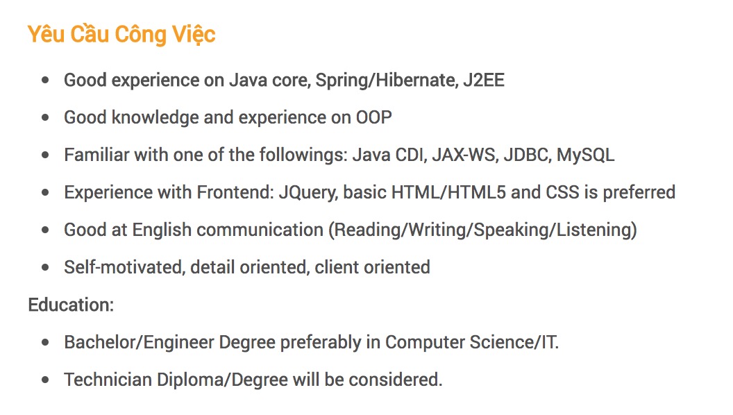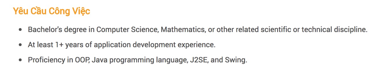 Bạn có để ý là chúng đều đòi hỏi Bachelor/Engieer Degree, hoặc trình độ Đại Học ko? Không có bằng ĐH, cơ hội việc làm của bạn sẽ hẹp hơn các bạn sinh viên đã ra trường nhiều.